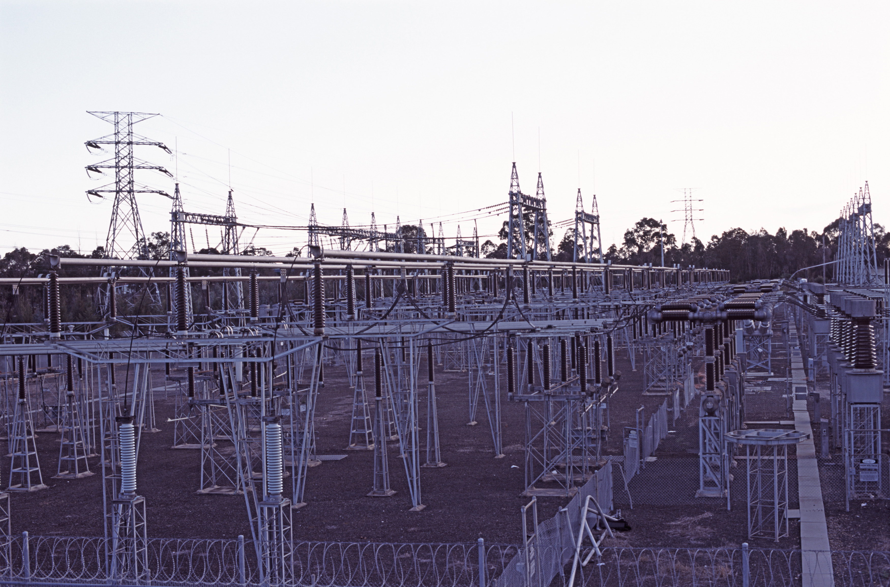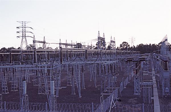 a large electricity distribution switching station. equipment allows power to be routed in different ways and to isolate transmission lines under fault conditions