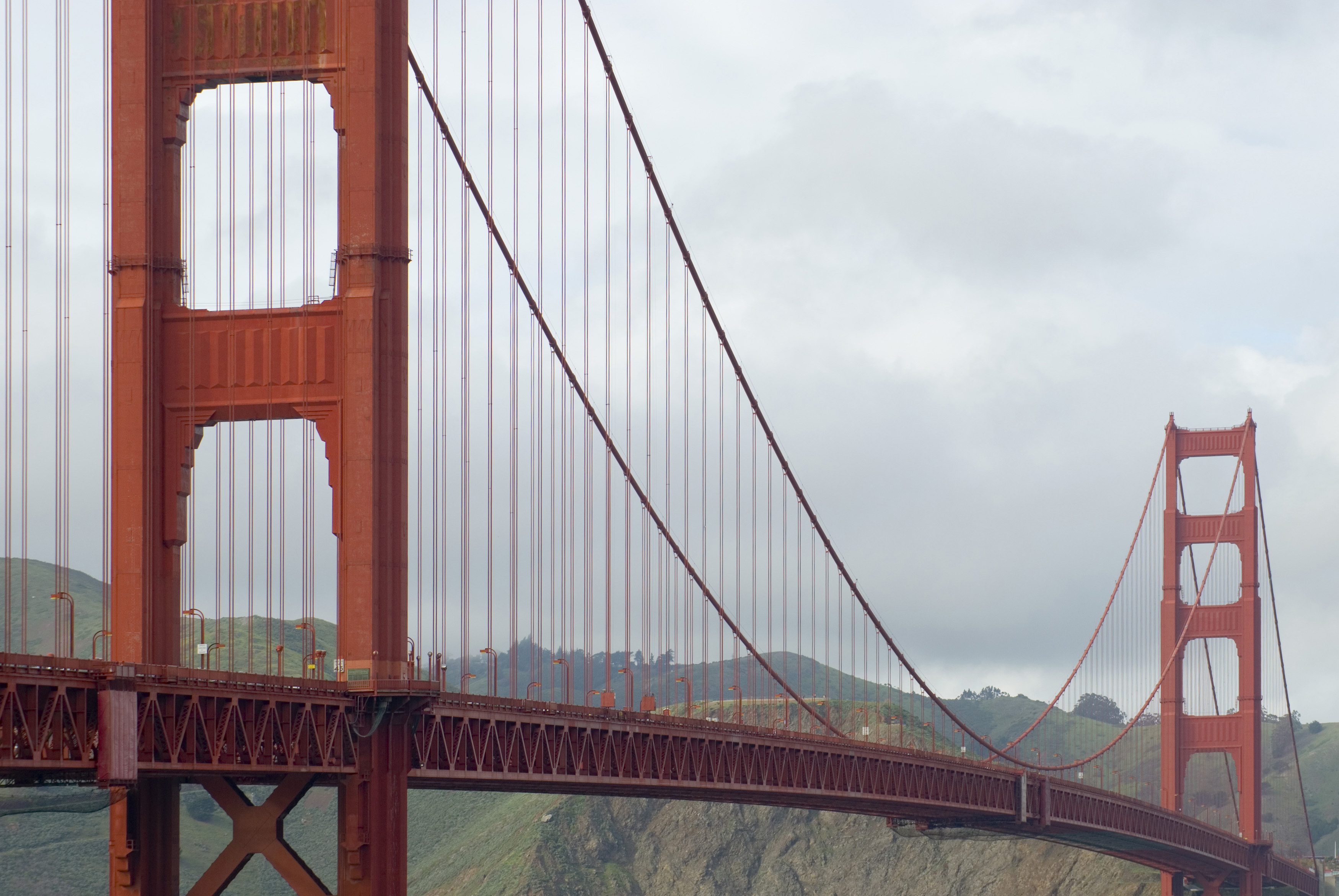 - landmark san francisco icon iconic red painted structure suspension crossing goldengate girders cables rivets rivvets engineering parabolic mathematical shape curved