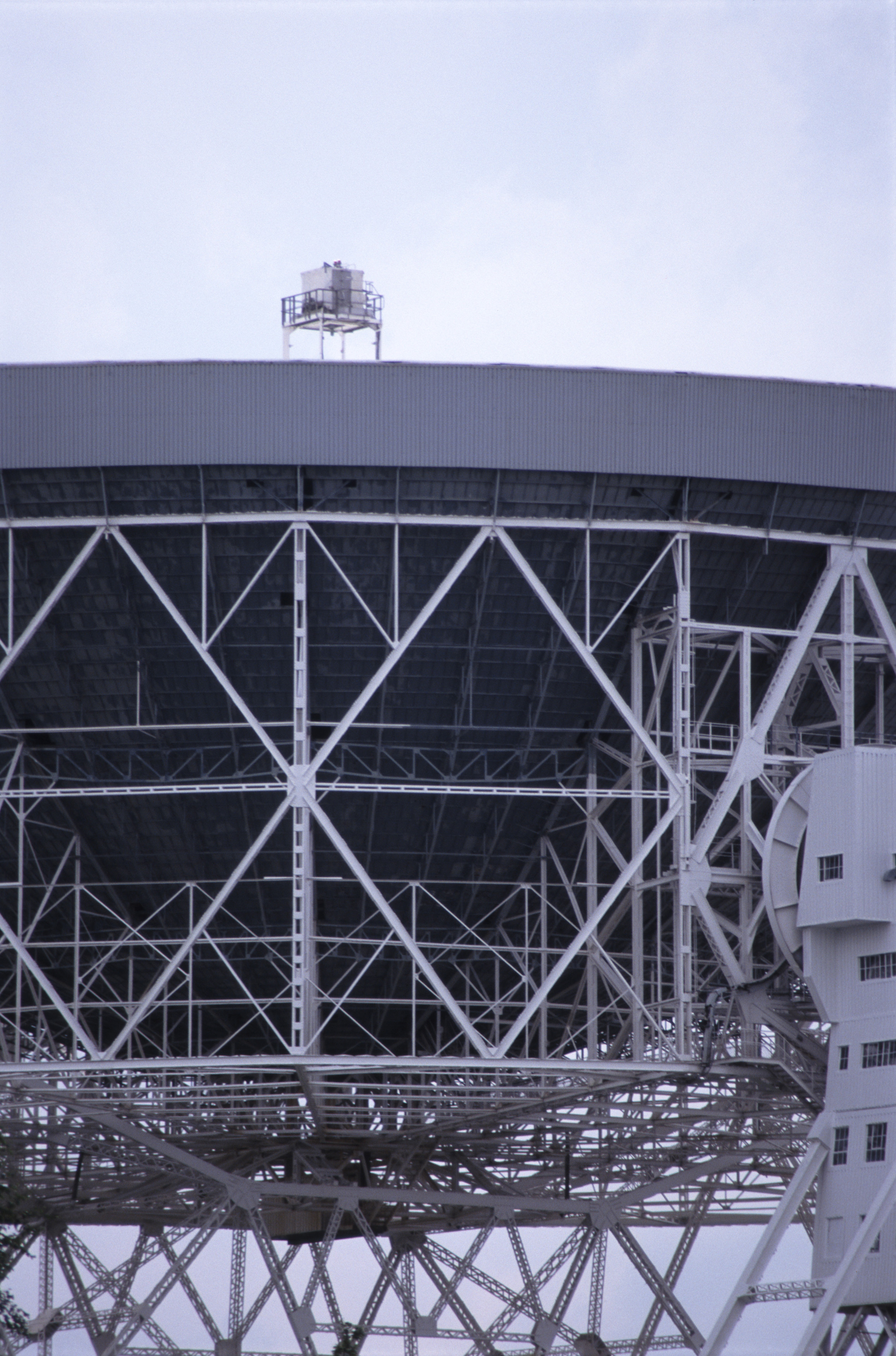 - astrophysics britain jodrel bank observatory radio research technology telescope framework lattice structure science closeup architecture building