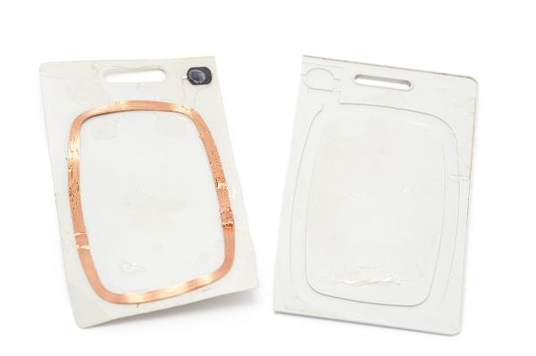 Proximity card opened to reveal the antenna that enables it be read by an electronic reader unit without actually having to insert it